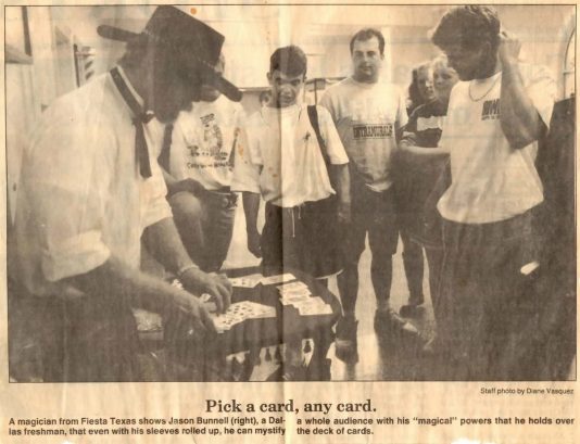 The best trick I ever saw was my freshman year of college. A card shark wanted to show how old riverboat gamblers cheated at cards. The thing was, I didn’t know the real trick until last night about 25 years…